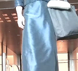 ⑧タイトスーツ、フリフリブラウスでおもてなし