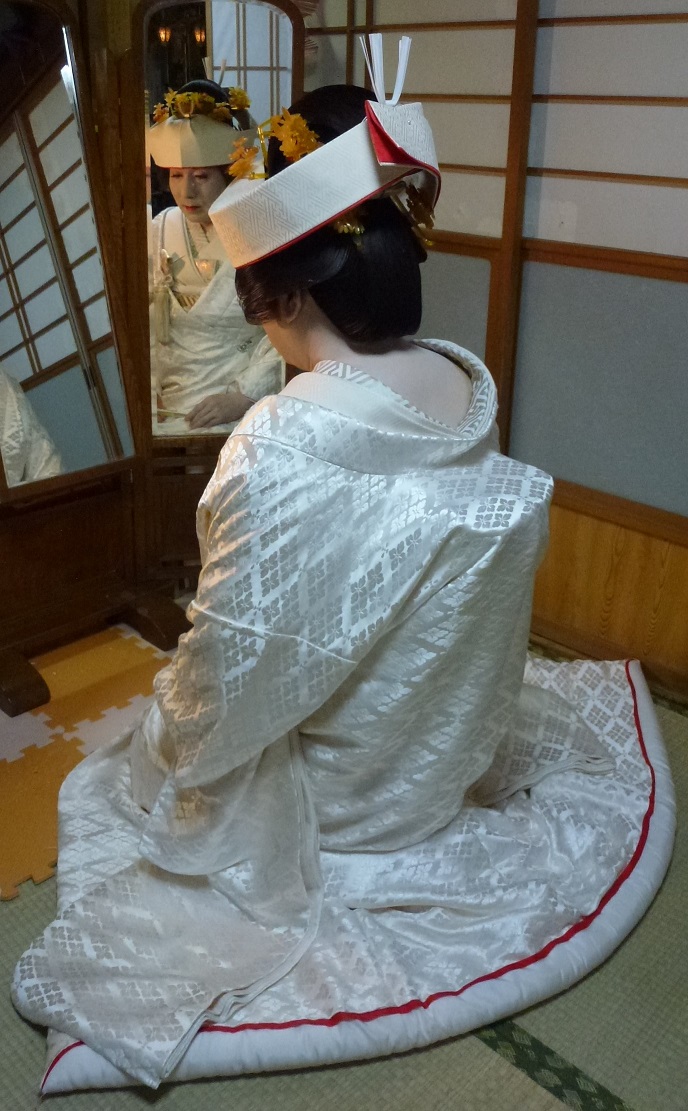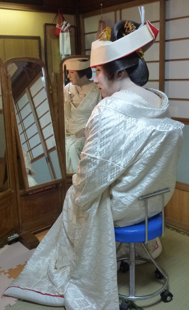 花嫁の抜き衣紋、私も好きです。白く塗られた襟足、気に入っています。